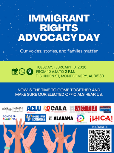 Over 140 grassroots leaders showed up in early February 2026 for the 3rd Annual Immigrant Advocacy Day at the Alabama State House. Participants shared their personal stories with elected officials, and spoke with them about the harms they would experience if any of a package of proposed anti-immigrant bills were to pass.