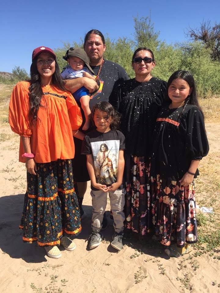 Duke with his niece (who is a plaintiff in Apache Stronghold v. United States), his wife - Dr. Lian Bighorse, and their children / Duke con su sobrina (demandante en el caso Apache Stronghold contra Estados Unidos), su esposa - la Dra. Lian Bighorse, y sus hijos |